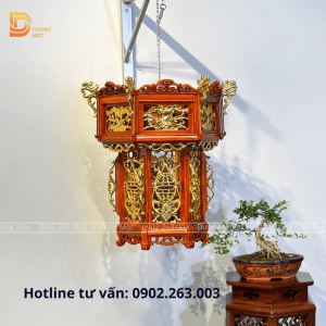 Tên sản phẩm: Đèn Lồng Gỗ Hương Hoa Sen Dát Vàng 55cm DL04