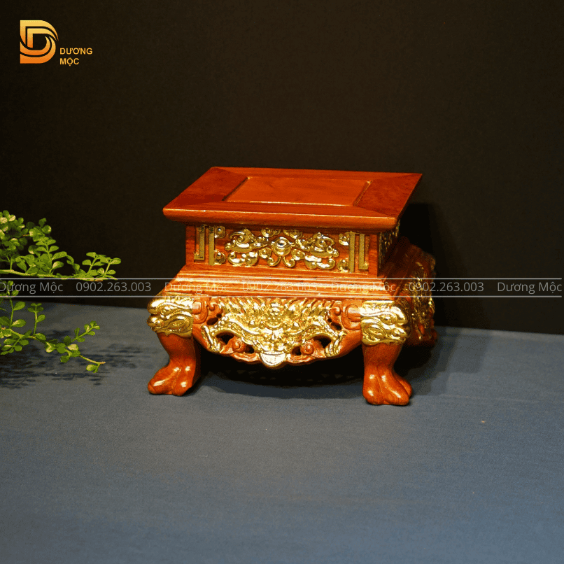 Đôn Vuông Gỗ Hương Chạm Rồng Dát Vàng 20×16 DTK10