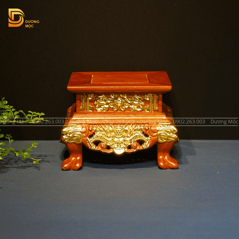 Đôn Vuông Gỗ Hương Chạm Rồng Dát Vàng 20×16 DTK10