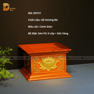 Đôn vuông gỗ hương chạm sen dát vàng 30×20 DKT21 là một tác phẩm nghệ thuật tinh xảo, được chế tác từ gỗ hương tự nhiên và trang trí bằng hoa văn sen chạm khắc tỉ mỉ. Với kích thước 30×20 cm, đôn phù hợp để kê tượng, đồ trang trí hoặc các vật phẩm phong thủy, mang đến vẻ đẹp quý phái và sang trọng cho không gian của bạn.