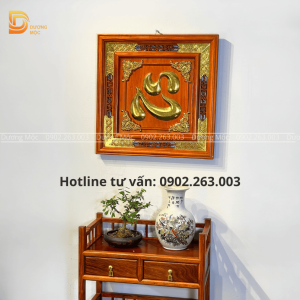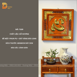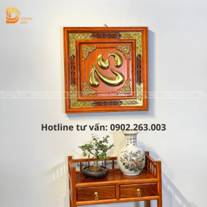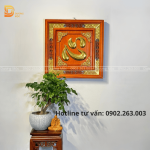 Tranh Chữ Tâm Gỗ Hương Dát Vàng TG09