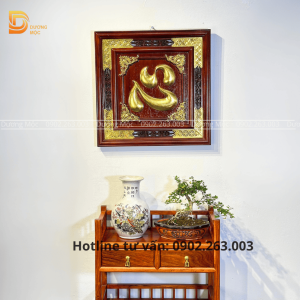 Tranh Chữ Tâm Gỗ Hương Dát Vàng TG10